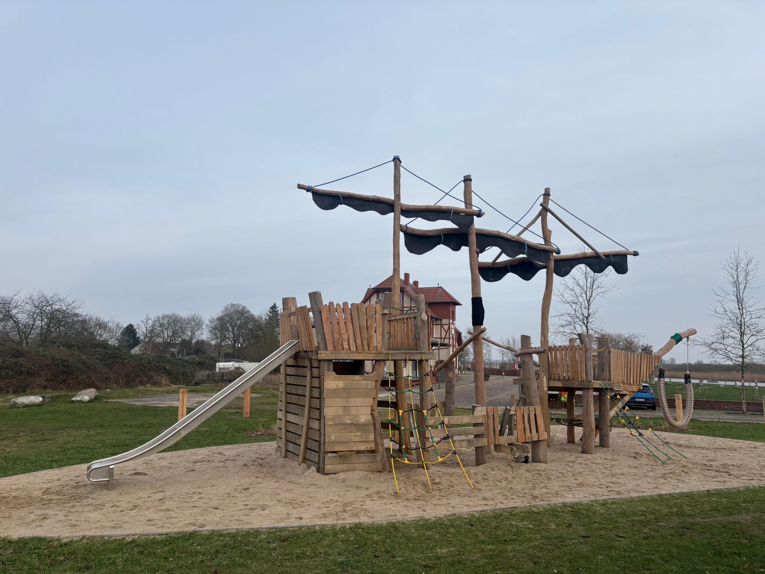 Ein individuell gestaltetes Kletterspielgerät, das Kinder auf fantasievolle Seereise schickt. Mit seinem maritimen Design und den zahlreichen Spiel- und Klettermöglichkeiten wird dieses Piratenschiff schnell zum Mittelpunkt jeder Außenanlage. Die Konstruktion besteht aus robustem Robinienholz und wird nach aktuellen DIN-Normen gefertigt und aufgebaut. Ob als Einzelgerät oder Teil einer größeren Spiellandschaft – das Piratenschiff bringt Abenteuer, Bewegung und Kreativität auf den Spielplatz.